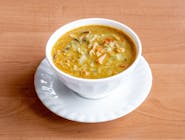 Zmiksowany bulion warzywny z czerwoną soczewicą, pomidorami, cebulą, mlekiem kokosowym i aromatycznymi przyprawami. 400ml -