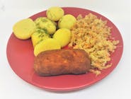 Filet z kurczaka zawijany z serem, ziemniaki z koperkiem, marchewka z jabłkiem ze śmietaną